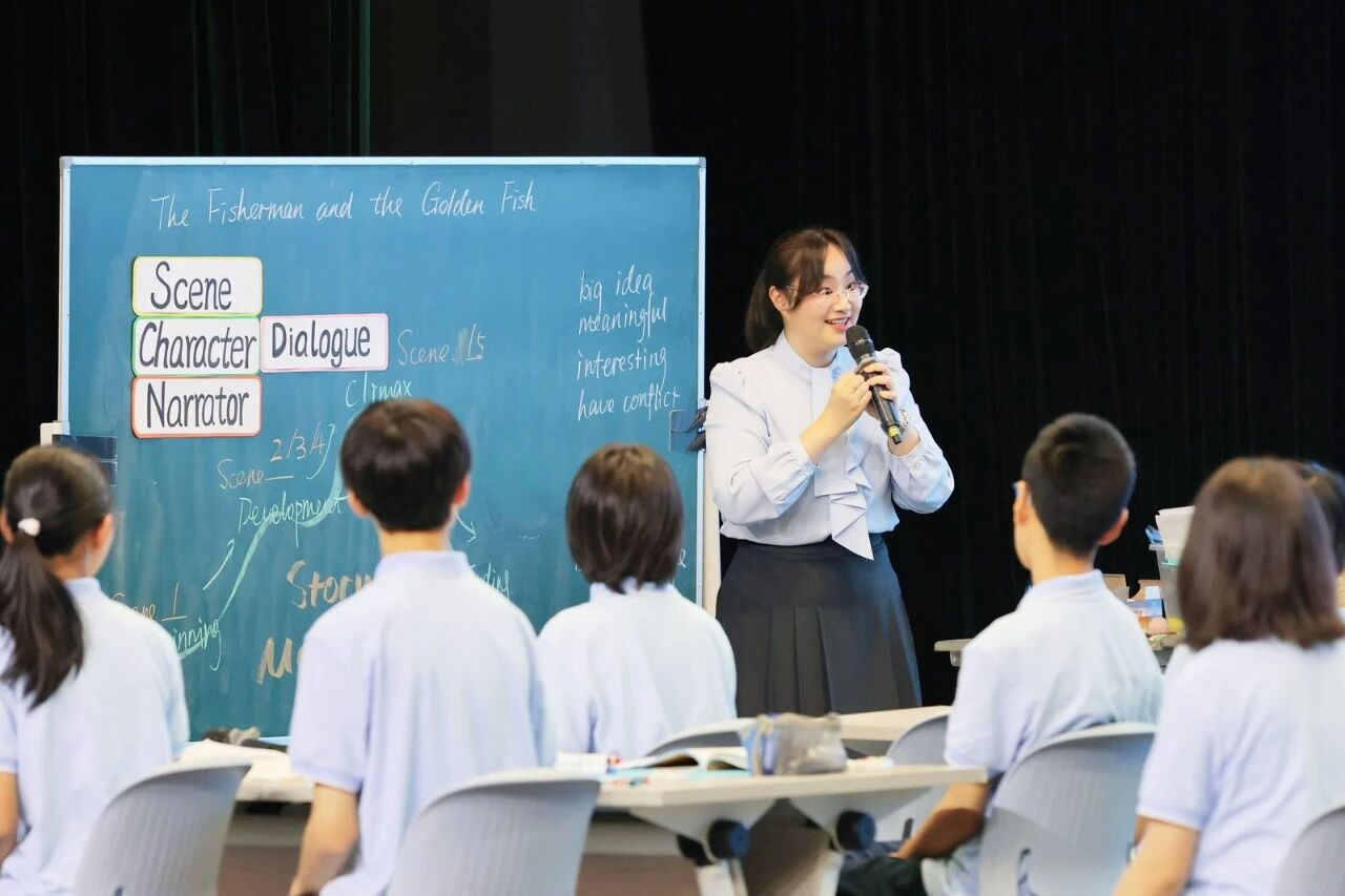 第二节展示课中,杭州市文海中学汪秋艳老师对人教版(2024)七年级下册第八单元的语篇 The Fisherman and the Golden Fish 进行讲解。通过经典童话的改编剧本,引导学生探讨人性与价值观。汪老师以剧本为载体,通过不同教学活动的设计,带领学生梳理故事情节、分析人物性格、讨论故事寓意,引导学生合作创编结局并进行表演。