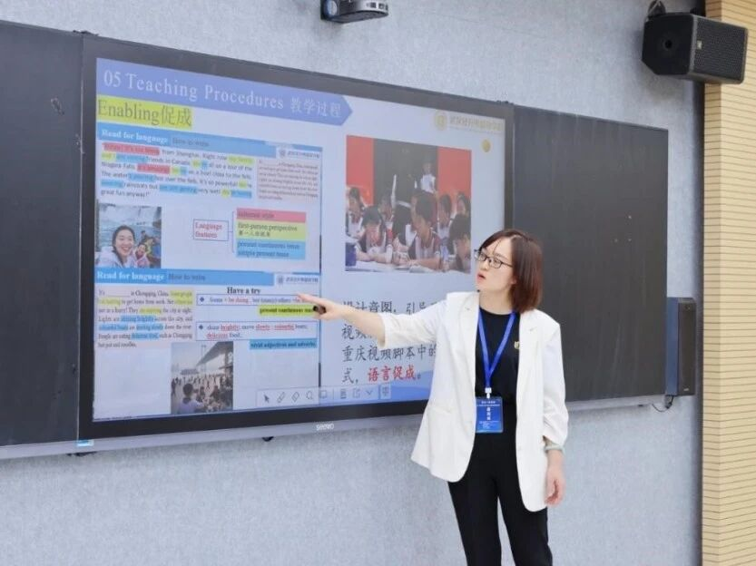随后,来自全国五所学校的优秀教师展示了不同学段的英语教学课例。华南师范大学附属中学的王昕老师通过访谈语篇分析,展示了一堂聚焦数字信息处理与交际策略识别的听说课;深圳市南山外国语学校(集团)高级中学的周舟老师以情境化任务驱动课堂,展现高阶思维培养的创新实践;武汉经开外国语学校的杨翠菊老师通过视频脚本分析,阐述了基于读写连接和产出导向法的教学实践;郑州市第十一中学的张硕老师借助思维导图,带领学生总结归纳课文内容与功能性语言;武汉大学附属外语学校陈文丁老师立足单元主题,创新设计研学旅行日记写作课。各校老师的课例展示均探索了先进教学理念的运用与方法创新。北京外国语大学教授杨鲁新、浙江外国语学院副教授邵艳红、杭州市文海教育集团党委书记罗敏江、浙江省英语教研员葛炳芳、李威峰分别在评课环节进行了专业点评。
