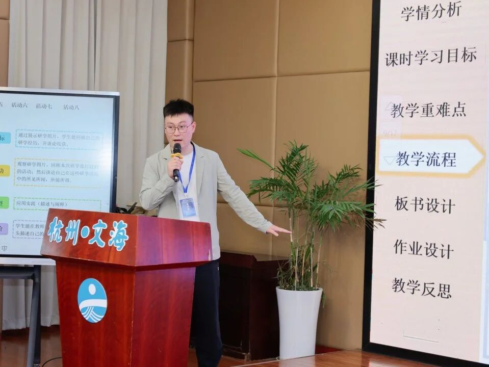 16日下午举行了两场教学展示活动和五场创新教学设计分享活动。第一节教学展示中,浙江师范大学附属海宁市第五中学教育集团的毛新德老师就外研版(2024)初中英语七年级下册第五单元 Natural wonders crying aloud for help 进行了一节读写课展示。毛老师以问题链和递进式阅读活动为核心,引导学生梳理文本信息并挖掘主题意义。课程语言学习与育人观念并重,激发学生对自然保护问题的深切关怀与思考。
