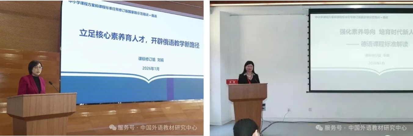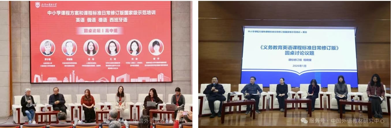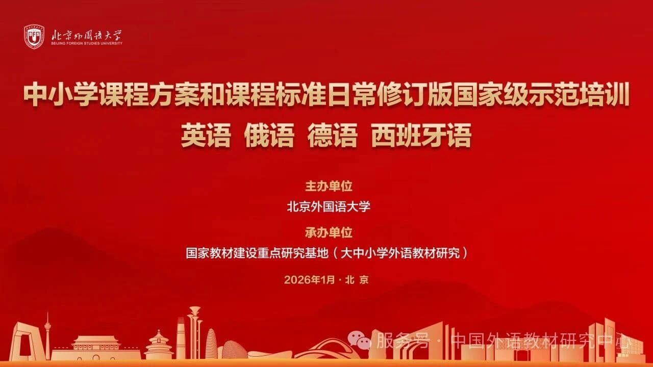 2026年1月20日-21日,由北京外国语大学主办、国家教材建设重点研究基地(大中小学外语教材研究)承办、外语教学与研究出版社提供支持的“中小学课程方案和课程标准日常修订版国家级示范培训(英语 俄语 德语 西班牙语)”在北京外国语大学国际会议中心成功举办。本次培训聚焦英语、俄语、德语、西班牙语四个语种,覆盖小学、初中、高中三个学段,通过专题报告、圆桌讨论、教学案例观摩与评析、工作坊等多种形式,深度解读课程方案和课程标准修订要点,探讨教学转化路径,推动课程标准的落地实施。