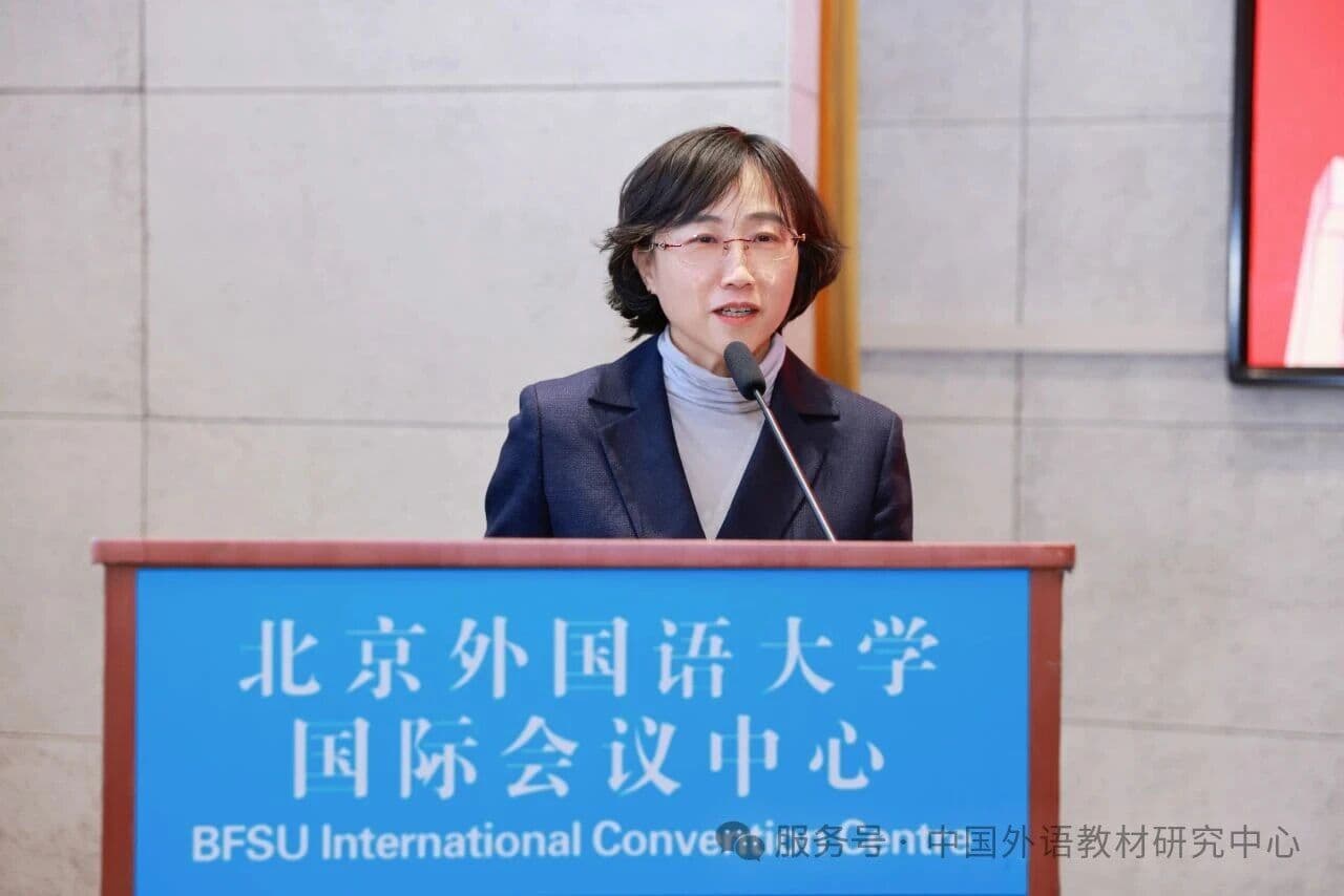 1月20日上午,教材局课程教材规划处处长李明出席开班仪式并致辞。她指出,本次培训以“统分结合、突出重点、系统推进和示范性”为特点,聚焦中小学课程方案和课程标准日常修订版,旨在促进义务教育、普通高中及中职课程一体化改革。她希望学员积极参与培训并在教学、教研、教材编写中落实课程标准理念。开班仪式由北京外国语大学国家教材建设重点研究基地主任孙有中主持。