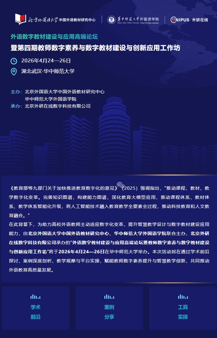 1号通知丨外语数字教材建设与应用高端论坛暨教师数字素养与数字教材建设与创新应用工作坊